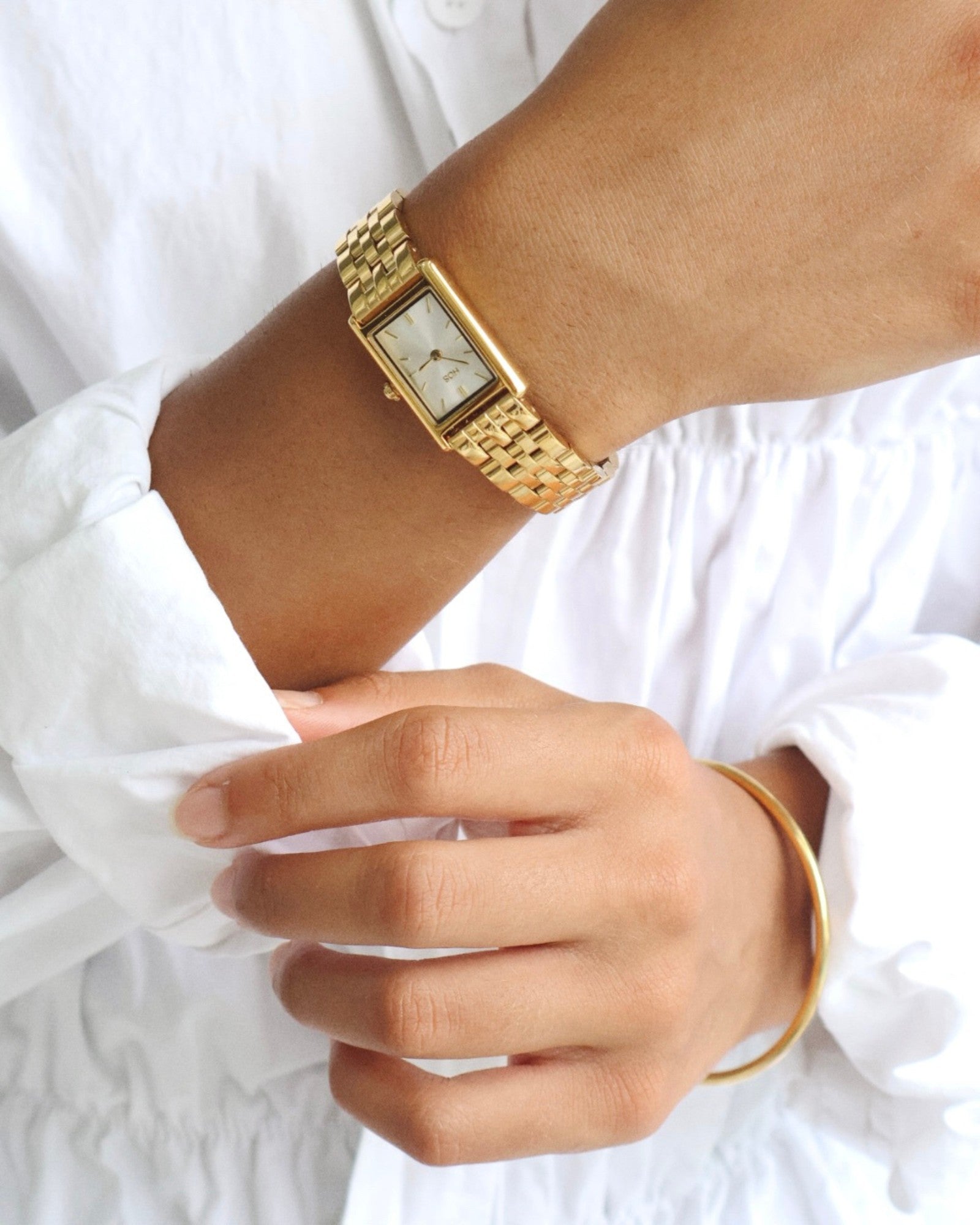 Crafted from durable 316L stainless steel, Harper is made to be worn daily. The slim profile sits effortlessly on the wrist, while the polished bracelet catches the light in subtle movement. Whether styled alone or layered, it holds its own.