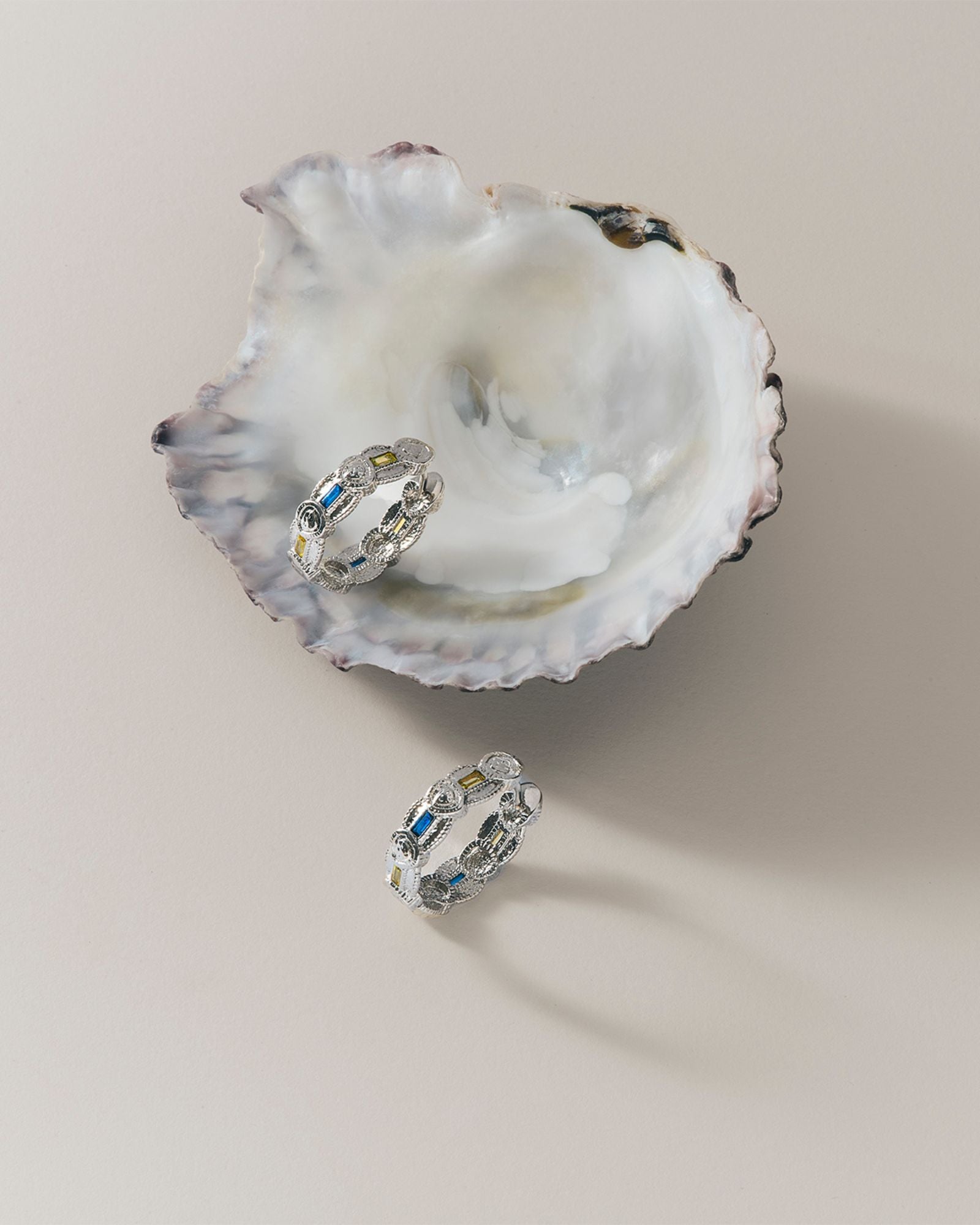 - Gemstones Silver: Sapphire blue, warm yellow, and white cubic zirconia