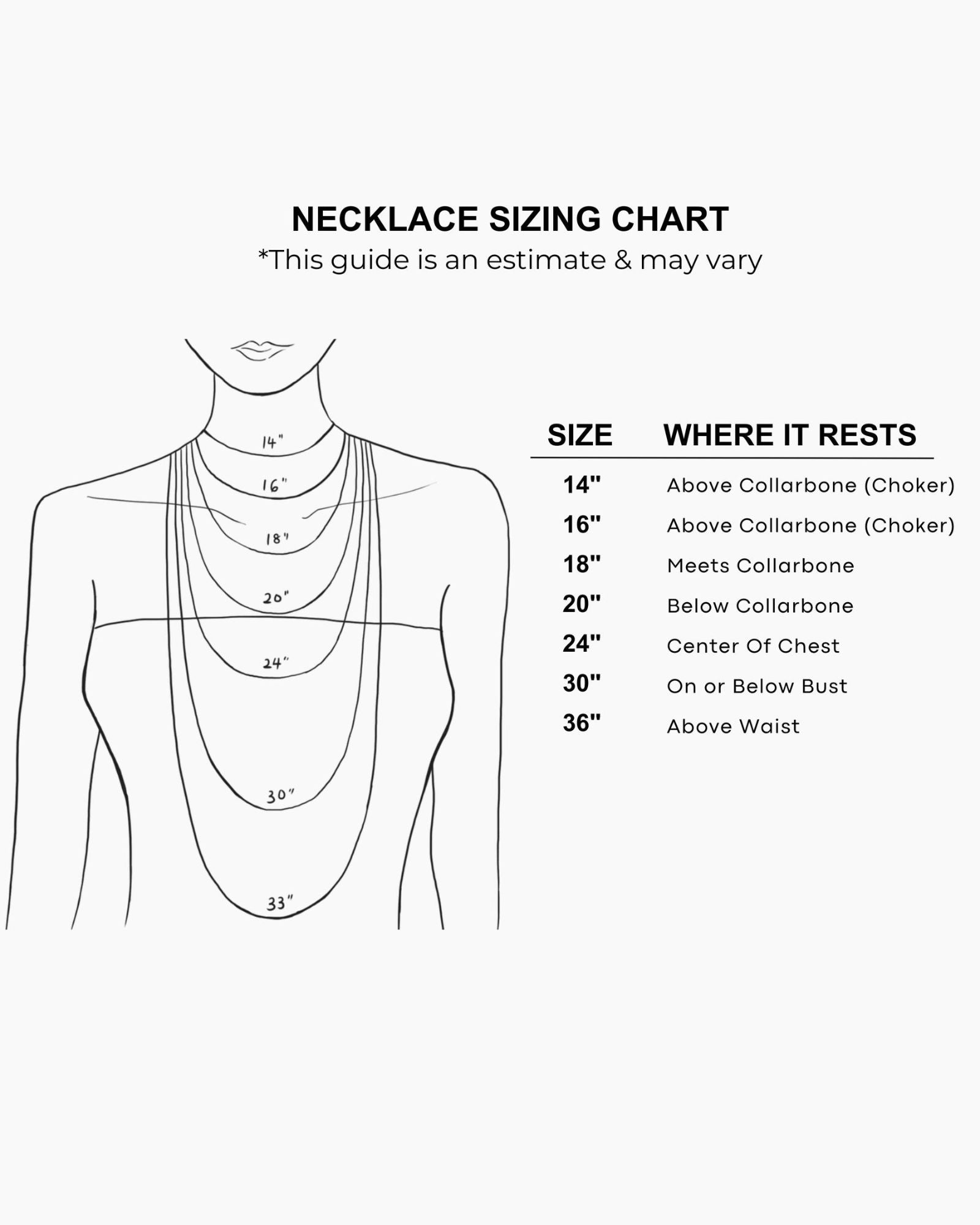 Not sure which ring size or necklace length is right for you? Click here to find your ring size, or click here to see our necklace length guide.