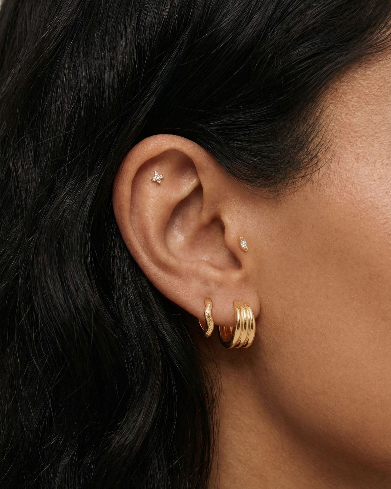 Crafted with a sterling silver base and finished in a thicker layer of 18K gold plating, they deliver long lasting shine while remaining lightweight and comfortable. The butterfly back closure provides a classic, secure fit, making them ideal for lobe piercings and all day wear.